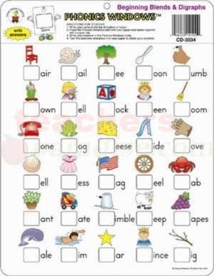 CARSON DELLOSA Phonics Windows Beginning Blends & Digraphs (With Answers 8-1/2″ X 11″) CD-3034