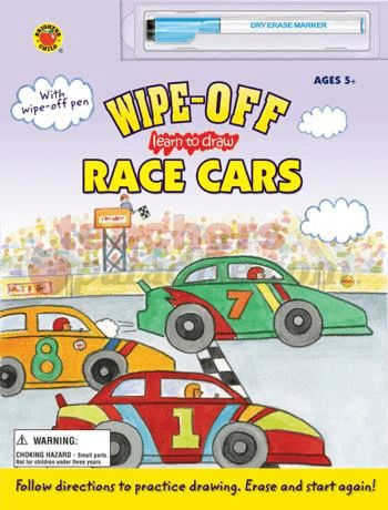 Learn to Draw Race Cars is an intriguing educational approach to teaching drawing, fin motor skills, and direction following skills. Kids will enjoy Learn to Draw Race Cars with its child-friendly illustrations and fun, step-by-step directions. This innovative product will enable children to have fun while they learn. If you make a mistake, you can simply erase and start again!