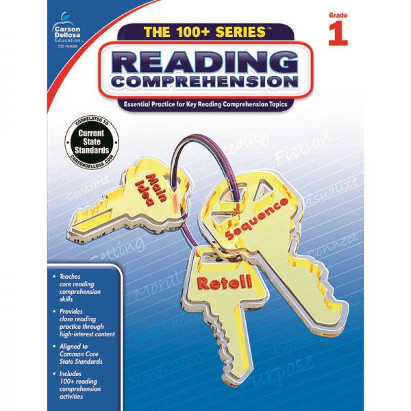Reading Comprehension for grade 1 is designed to aid in the review and practice of reading comprehension skills. Grade 1 covers standards such as main topic and key details, identifying an author’s purpose, summarizing, and inferring. The book includes engaging nonfiction and fiction passages and stories to appeal to all readers. The 100 Series Reading Comprehension books span grades 1 – ;8. The activities in each book reinforce essential reading comprehension skills by providing practice with sequencing, main idea, predicting, and inferring, as well as story elements, character, plot, and setting. The books include engaging grade-appropriate fiction and nonfiction passages and stories. Each book has 128 pages and 100 pages (or more) of reproducible content to help students review and reinforce essential skills in reading comprehension. The series is correlated and aligned to the Common Core State Standards.