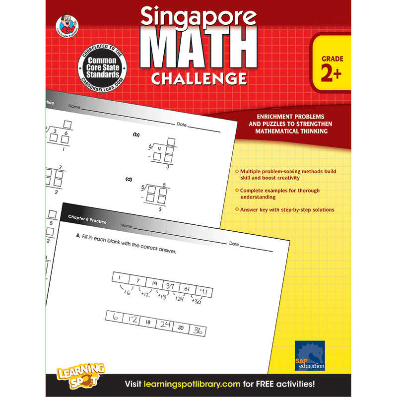 Get ready to take the Math Challenge! Singapore Math Challenge will provide second grade students with skill-building practice based on the leading math program in the world, Singapore Math! Common Core Standards accelerate math expectations for all students, creating a need for challenging supplementary math practice. Singapore Math Challenge is the ideal solution, with problems, puzzles, and brainteasers that strengthen mathematical thinking. Step-by-step strategies are clearly explained for solving problems at varied levels of difficulty. A complete, worked solution is also provided for each problem. Singapore Math Challenge includes the tools and practice needed to provide a strong mathematical foundation and ongoing success for your students. The Common Core State Standards cite Singapore math standards as worldwide benchmarks for excellence in mathematics.