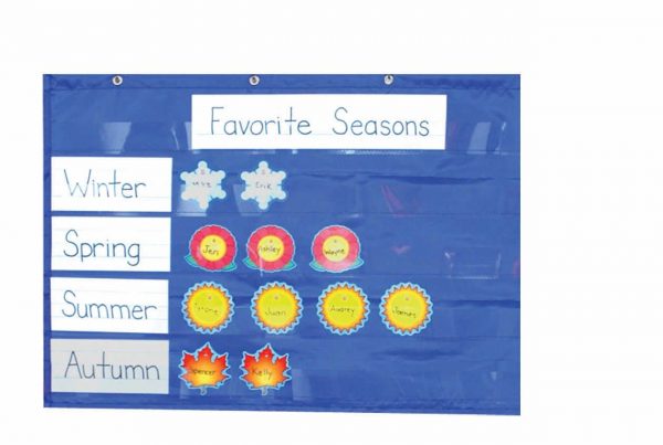 Chart measures 31″ x 19″ with 5 clear pockets. Includes a resource guide with activity suggestions. Durable construction with sturdy grommets for easy hanging. This teacher-requested design is perfect for smaller spaces!