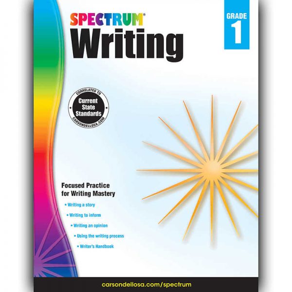 Spectrum? Writing for grade 1 guides students through each step of the writing process as they write sentences, personal stories, descriptions, how-to instructions, reports, opinions, and more. Spectrum? Writing workbooks guide students as they write for a variety of purposes, including writing to tell a story, writing to provide information, and writing to state an opinion. Lessons support current state standards. Step-by-step instructions help with planning, drafting, revising, proofreading, and sharing writing. A Writer’s Handbook reinforces grammar and language skills, and a complete Answer Key is included. Engaging, open-ended writing projects combined with standards-based learning make these workbooks an essential resource for school success. Spectrum, the best-selling workbook series, is proud to provide quality educational materials that support your students’ learning achievement and success.