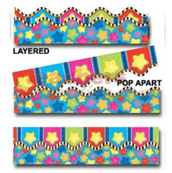 A creative concept for a creative look, the Stars & Little Stars border set includes 13 3 foot x 3 inch strips for a total length of 36 feet. Keep it together for a 3 inch border or pop apart for two 1.50 inch scalloped borders, creating 72 feet of border. Other options include stacking for a layered look.