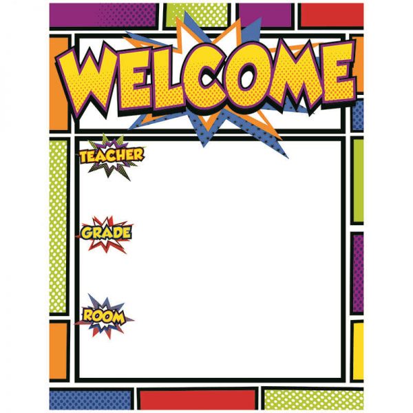 Energize your learning environment with the Super Power collection. The Super Power Welcome chartlet features writing space to display your name, grade, and room number, making it easy to welcome students and parents to your classroom. Chartlets are excellent reference resources for students and teachers. Each welcome chartlet measures 17 x 22 inches. Be sure to add other coordinating products to create a cohesive classroom theme!