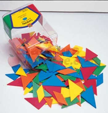 Here are 30 sets of Tangrams so each child can explore geometric properties such as shape, size, congruence, similarities, and symmetry. The seven-piece puzzles come in red, blue, green, yellow, or orange and once assembled, the square, parallelogram, and five triangles make a 10cm square. The sturdy plastic pieces can be used to make thousands of geometric designs and are a great source for stimulating and challenging problem-solving explorations. Includes 30 sets of Tangrams (six each of five colors) and an activity sheet, in a clear plastic jar.