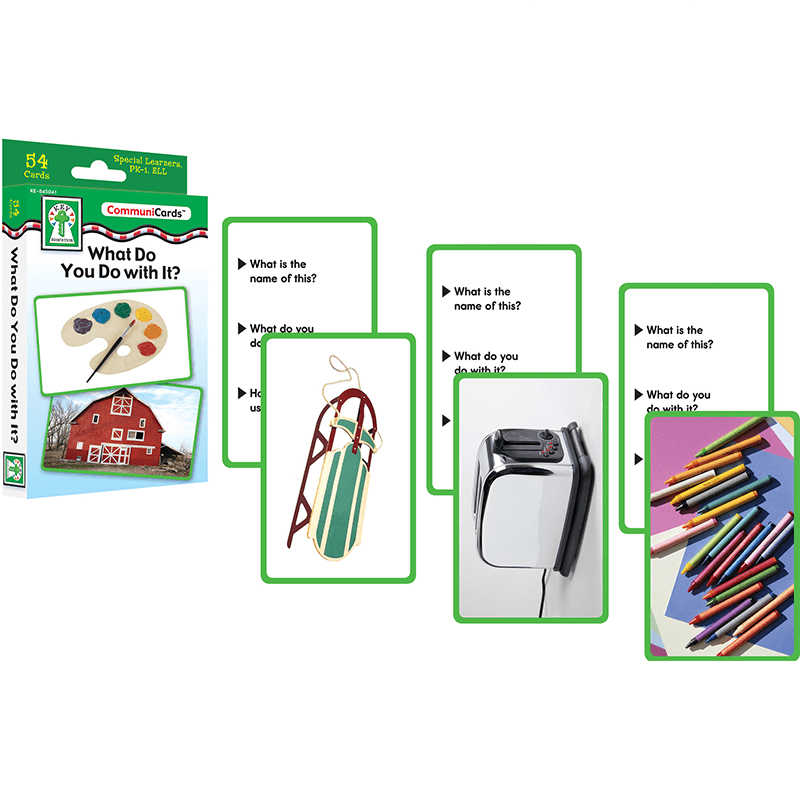 Help young learners improve listening, conversation and social skills with What Do You Do with It? ConversaCards?. These bright, easy-to handle, photographic cards teach functional vocabulary, identifying attributes, and logical thinking. Each set includes 52 colorful photo cards, and 2 teacher resource cards.
