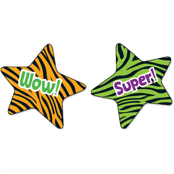 Add a burst of color and motivation to notes, calendars, homework papers or classwork with these Wild Style star-shaped stickers! Fun and bold, this contemporary design includes positive words of encouragement making them an essential addition to any teacher’s desk! Each pack of these acid-free and lignin-free stickers includes 120 stickers!