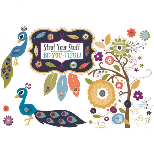 Make your classroom one of a kind with the 54-piece You-Nique Strut Your Stuff bulletin board set. This set features peacock, feather, and flower accents to create a unique display that encourages individuality. –Create a learning environment that boosts your students’ spirits by adding stylish bulletin board sets to your classroom. These eye-catching sets are versatile by design, allowing the pieces to be used individually or together to assemble your ideal display. With bold colors and contemporary patterns, bulletin board sets offer more than just decoration – ;they help motivate your students by creating a fun, focused environment. Be sure to look for other coordinating products to create a cohesive classroom theme!