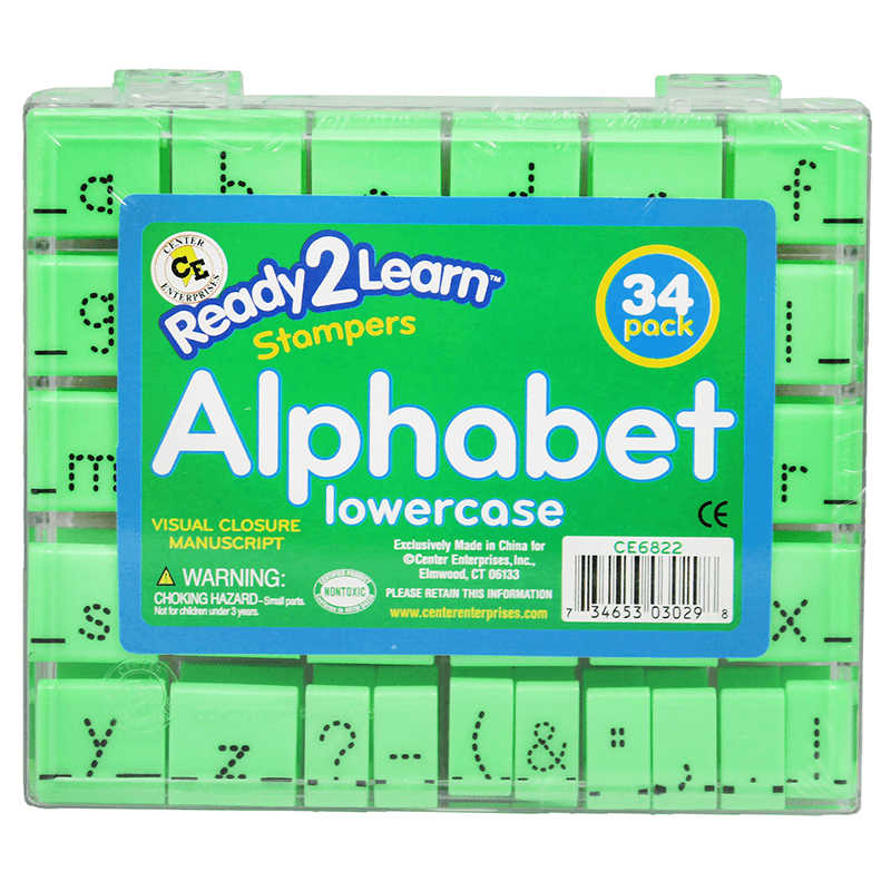 Ready2Learn? Manuscript Alphabet Visual Closure Stampers reinforce visual discrimination and provide practice for students to recognize the formation and tracing of fragmented manuscript letters. These 34 rubber stamps, with easy-to-grip plastic handles, come in their own clear, labeled and sectioned storage case and include 26 alphabet and 8 punctuation stamps.