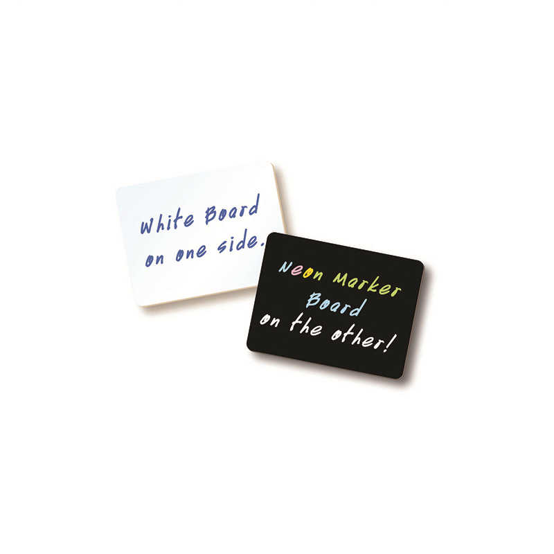 Double-sided dry erase combo board features a white board on one side and a black dry erase board on the other. Set contains 10 boards.