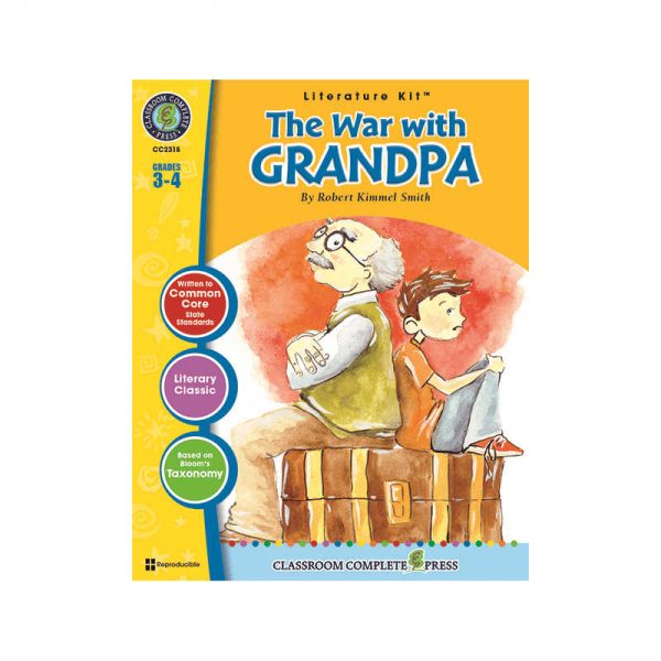 In this State Standards-aligned Literature Kit?, we divide the novel by chapters or sections and feature reading comprehension and vocabulary questions. In every chapter, we include Before You Read and After You Read questions. The Before You Read activities prepare students for reading by setting a purpose for reading. They stimulate background knowledge and experience, and guide students to make connections between what they know and what they will learn. The After You Read activities check students’ comprehension and extend their learning. Students are asked to give thoughtful consideration of the text through creative and evaluative short-answer questions and journal prompts. Also included are writing tasks, graphic organizers, comprehension quiz, test prep, word search, and crossword to further develop students’ critical thinking and writing skills, and analysis of the text. About the Novel: The War with Grandpa is a story about a young boy and his grandfather at odds. 10-year-old Peter Stokes loves his grandfather and is excited to learn that he will be coming to live with the family. That is, until he learns that grandpa will be taking over Peter’s bedroom. Peter’s two best friends encourage Peter to stand his ground and do something about this injustice. Peter soon declares war on his grandfather, who proves to be an even match. The two attack and counterattack each other until escalations lead to one finally surrendering. The War with Grandpa is a gripping story about intergenerational family relationships. All of our content is aligned to your State Standards and are written to Bloom’s Taxonomy.