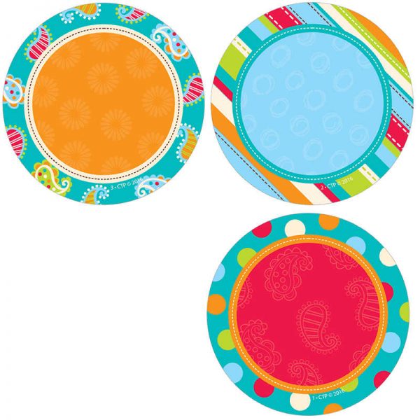 These Dots on Turquoise Dots 3″ color cut-outs are accented by original CTP patterns such as Dots on Turquoise, Stitches and Stripes, and Turquoise Paisley.