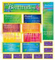 The Beatitudes remind children how God blesses those that strive to be Christ-like. This set includes a title, 8 miniposters of the verses, 16 review cards, and a small poster with the Beatitudes passage.
