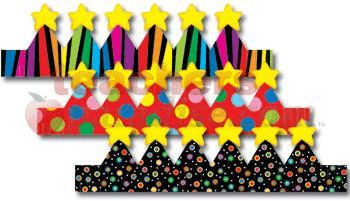 Celebrate special occasions and great accomplishments with these fun and fanciful crowns! Each adjust-to-fit crown measures 24″ x 6?”. 30 crowns per package. 10 each of 3 designs.
