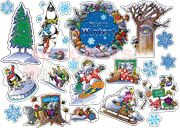 This set includes a Welcome Winter! Wreath as well as scenes of playful penguins, snow-loving polar bears, huddling birds, design-making woodpeckers, nut-hoarding squirrels, hibernating bears, and migrating fowl and butterflies. 29 pieces total.
