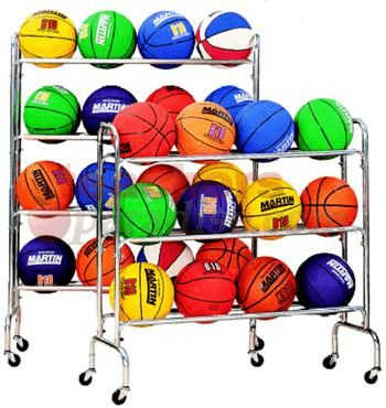 Portable ball rack made of heavy plated steel tubing with non-marring swivel casters.wide base helps prevent tipping.