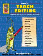 Activities to Develop and Enhance the Quality of Writing by Jane and Graeme Beals. Teach Editing is designed to develop students’ writing skills through an understanding of the process of editing. The reproducible activities focus on acquiring a knowledge of the parts of speech as well as the mechanics of developing a piece of writing into polished text. Each page of interesting activities is clearly laid out with concise explanations of the initial concept. Topics covered include punctuation, nouns and verbs, sentence structures, story openings and endings, and brainstorming techniques. 40 pages.