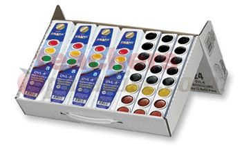 The preferred watercolors specified by schools and teachers across America. Semi-moist watercolor formula and choice pigments blended with specially formulated binders and dispersing agents has kept Prang watercolors a leader in the art world. Each has a white mixing box. Refills are available. AP certified non-toxic.