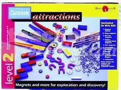 Includes five Magnet Wands, ring magnets, North/South bar magnets, domino-shaped magnets, disc magnets, ceramic horseshoe magnets, compasses, polished steel shapes, pencils, demonstration bar magnet, and age appropriate teacher guide.