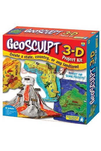 Whether it’s a school project or a fun weekend activity, creating a 3-D sculpture of a state, country, landform, or province is a fun, hands-on way to learn about geography – from the ground up! With the GeoSculpt? 3-D Project Kit, you’ll make a colorfully detailed, 3-dimensional map with sculpted landforms such as mountains, valleys, waterways, and more. Perfect for school projects like volcano models, too!