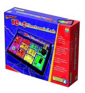 Investigate the magic of electricity through this unique, versatile laboratory. Young electronic engineers can build 10 different circuit projects with one unit, including a Morse code telegraph, a burglar alarm, and a radio that really works! The 20-page illustrated project guide provides easy-to-follow instructions and diagrams. The spring coil construction means no tools or soldering required! 9-volt battery (not included). Grades 4 and up Ages 9 and up