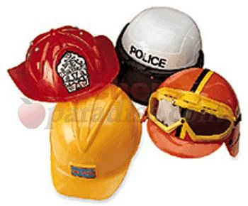 Four extra-durable plastic hats are great for role-playing, career awareness, plays, and other creative activities. Realistic hats have adjustable plastic liners for a perfect fit. Motorcycle helmet has removable goggles.