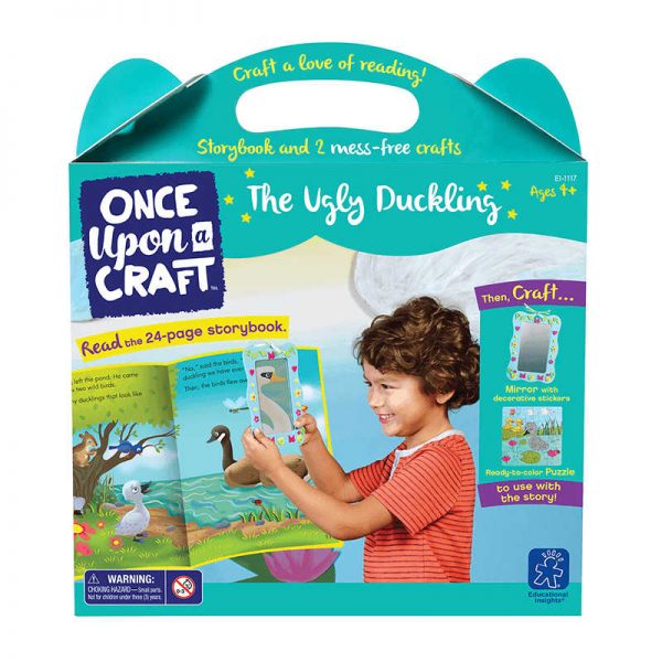Transform the tale of The Ugly Duckling with Once Upon a Craft? – ; featuring a beautifully illustrated storybook and two story-themed crafts! First, read the story together. Then, encourage your own beautiful swan to decorate the included mirror and color and assemble an Ugly Duckling story puzzle! When your child has finished creating, use the crafts to play together or as props for your next reading of the tale. Read the story… The Ugly Duckling storybook includes tips for reading aloud and additional activity ideas! Then bring it to life! Decorate and hang your own beautiful swan mirror! PLUS, color and assemble a 16-piece Ugly Duckling story puzzle!