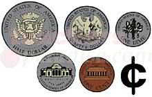 Kids can practice identifying and counting money with these actual size coin stamps. Includes one stamp for each coin (all denominations), tails side.