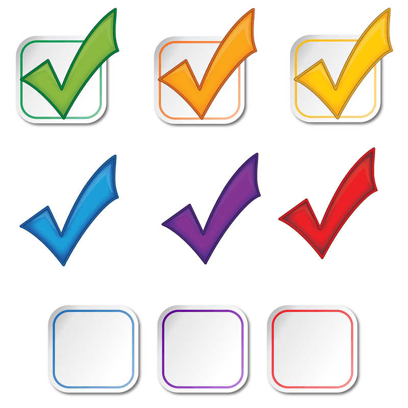Includes 4 each of 6 checkmark designs and 4 each of 6 box designs in which to place checkmarks. Package of 48. Approximately 6″ x 8″.