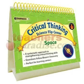 Critical Thinking Flip Centers strengthen critical thinking skills by creating opportunities for students to think about everyday objects in new ways! As they answer questions based on Bloom’s Taxonomy, students progress though the levels of knowledge, comprehension, application, analysis, synthesis and evaluation. Centers can be used individually or in small groups and include removable answer keys. Each center features and easel-backed stand that allows it to remain upright while students flip pages to work from front to back. Questions can be completed using basic classroom supplies. 28 pp. Grades 3 . Measure 5? x 6″.