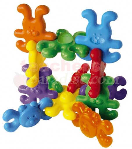 Quercetti Geokid Animal Links – Geokid Animal Links 18pc set. Babies love to interlock these delightful animals in 3 lovable shapes and 6 bright colors. Snap them together, pop them apart, build towers or chains for hours of fun. Developmental benefits: connecting animals develops motor skills and strengthens muscles while enhancing eye-hand coordination. It promotes creative thinking with infinite ways to interlock animals together. Finally, important color-sorting and shape-sorting activities encourage children to reason and develop their primary skills. 18 piece set. Ages 12m