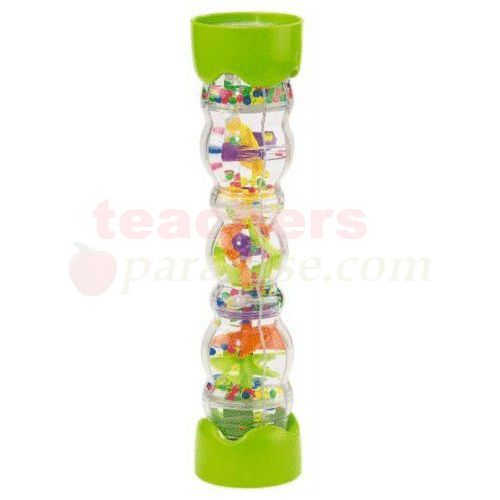 International Playthings Turn ‘n Tumble Rainstick. Cascading beads turn colorful spinners as they tumble down the tube. Features prisms on either end for kaleidoscope view. Visual and auditory stimulation.