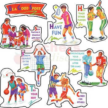 Illustrations show children interacting in positive ways with their peers. Each set contains four 17” x 24” panels (some panels are die-cut).