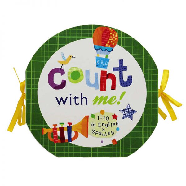 This book explores the basic numbers 1 through 10. Full of bright colors and lots of texture with a special accordion-fold format that will keep kids guessing what’s next. Little ones will love exploring each image as they count along. Learning the numbers in English and Spanish makes it even more fun!