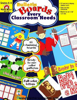 Bulletin boards are an important part of your classroom environment. They can make a room inviting, provide important information, display student’s work, and reinforce learning. Bulletin Boards Every Classroom needs gives you step-by-step directions, a colored picture of the finished product, full-color letters for the captions, and coloful cutouts to enhance the boards. Here are just a few of the 32 spectacular bulletin boards you get in this book: Ropin’ in Mighty Fine Work a cowpoke ropes in students’ good work; you get the cowboys boots & face; the caption letters that look like they’re made of rope. Something to Spout About! a friendly whale breeches to spout about good work.
