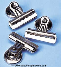 All steel bulldog clip with lifetime magnetic backing. Ideal for holding charts, posters and instructional materials to any steel surface. Grds All
