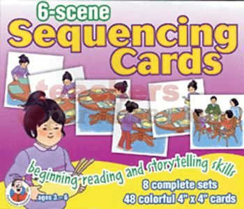 Sequencing is an important reading skill for all age levels! Everyday events are illustrated on a series of cards that can be used in a variety of ways. Children can put the cards in a logical sequence, an important step to becoming successful readers. Sequencing cards can also be used to develop storytelling skills. Forty-eight heavy-duty 4” x 4” cards are easy to handle and come in a sturdy storage box. For ages 3 and up.