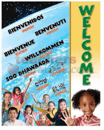 This cheap chart targets primary grades and provides teachers with the tools they need to decorate and organize their classrooms. With age-appropriate photographs, students will be able to say Welcome in eight languages.