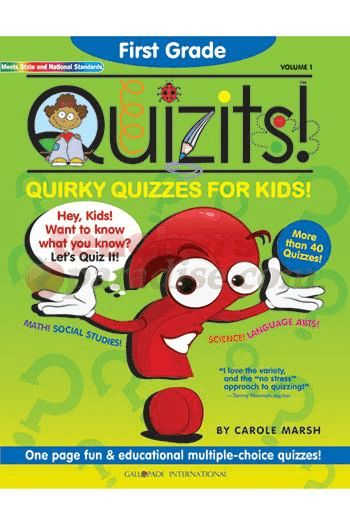 Quirky quizzes for First Grade kids! More than 40 fun & educational, one page, reproducible quizzes that cover math, social studies, science and language arts. Promote learning, classroom discussion, and meet state and national standards the fun way. Your kids will learn a lot of facts, have fun doing so, and learn to love tests!