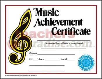 Now our most popular line of certificates is available in 8 1/2″ x 11″ size, authentic designs printed in full color on high quality paper. They are sold in lots of 30. Order now so you won’t be disappointed later. Certificate reads: Music Achievement Certificate __________ is awarded this certificate in recognition of __________ Given at _______ this _______ day of ______ year of ________