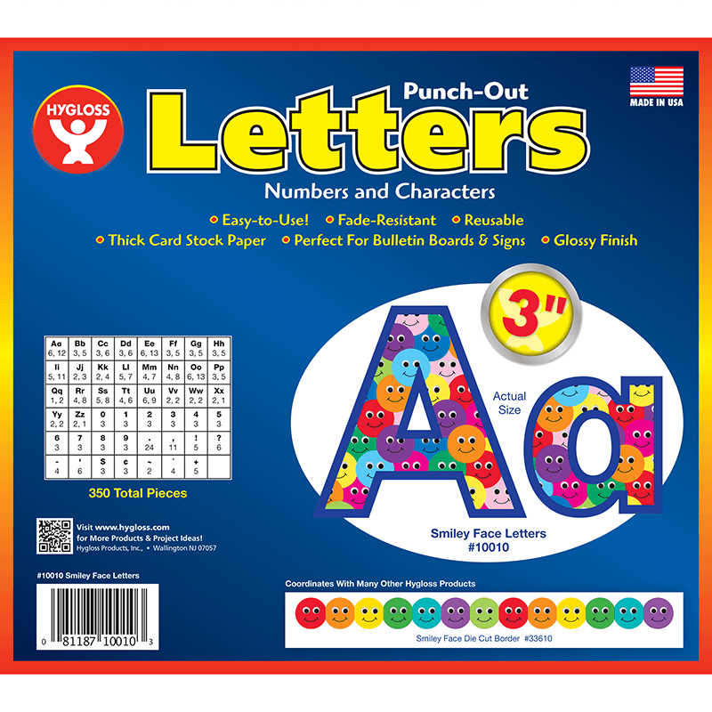 HYGLOSS PRODUCTS INC. 3IN PUNCH OUT LETTERS SMILEY FACES HYG10010