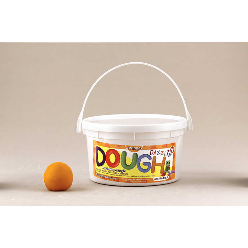 Dazzlin’ Dough! The non-toxic, long-lasting, premium quality modeling dough that is all-natural and made in the USA. An activity guide with instructions is included with your 3 lb. bucket, complete with convenient carrying handle.