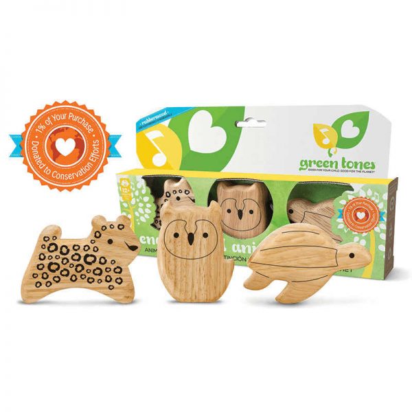 A special 3-piece collection of wooden animal shakers. Featuring one endangered animal from the land, sea, and sky and includes; Amur Leopard, Leatherback Turtle, and a Long Eared Owl. The set also includes an information card regarding each endangered animal. Shakers constucted of eco-friendly Rubberwood are easy to hold and play.