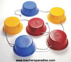 Sturdy flat-topped “buckets” are connected with rope which may be adjusted. Each bucket has a ribbed platform top to help prevent slipping. Children will gain confidence and improve balance as they progress from stepping on each bucket over short gap to jumping over longer gaps. Made from strong polyproplyene, buckets can support an adult’s weight. Extra sets may be added to form longer trails. Platform top 9.06″ diameter, base 12.60″ diameter, 5.12″ high. Includes 6 buckets in one set. Ages 2 and up.