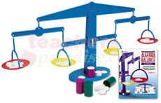 Algebra Balance: Unlike any other balance, this balance makes it possible to physically show that -1 < 0. Weights placed in the outer pans represent negative integers and those placed in the inner pans represent positive integers. Students use the balance to derive the rules for working with signed numbers, solving linear equations, building identities, and modeling systems of linear equations. Ideal for small group work, the sturdy 17" plastic balance comes with 4 plastic pans, a set of plastic weights, and 4 plastic canisters. Detailed instructional booklet included. Algebra Balance Activity Book: Written specifically for the Four-Pan Algebra Balance, this 64-page teacher resource book models how to use the balance to teach integers, additive inverses, and equivalent equations. Also shows how to solve equations in one or two variables and systems of equations. Teacher Notes and blackline masters included.