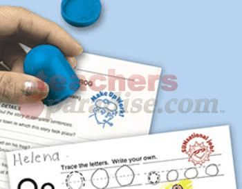 You’ll never need stamp pads again with these unique self-inking stamps. Just snap off the lid and stamp! The 12-stamp set includes messages of praise and encouragement, reminders about missed or incomplete assignments, homework and extra credit stamps, and special messages just for parents!