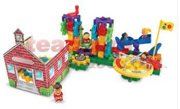 # Set of 60 pieces includes 20 colorful gears, 5 figurines, playground equipment, write & wipe schoolhouse, flag, sticker sheet and base