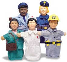 These career puppets come packaged in their own reusable puppet theater! Set includes five 10″ washable puppets. Puppets represent a Nurse, Businesswoman, Construction Worker, Police Officer and Mail Carrier. Ages 3 to 8