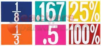 Make the relationship between fractions, decimals, and percents easy for your child to understand with these three 24-piece sets of colorful, weighted plastic numbers. Each piece is weighted, relative to the whole (1, 1.0, or 100%). Sets can be used singly or can be interchanged with each other. Activity Guide included.