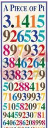 Share a treat with students by hanging this colorful display of hundreds of digits of pi. It’s over 5 1/2 feet tall. Package contains a teacher’s guide with background information and related activities.